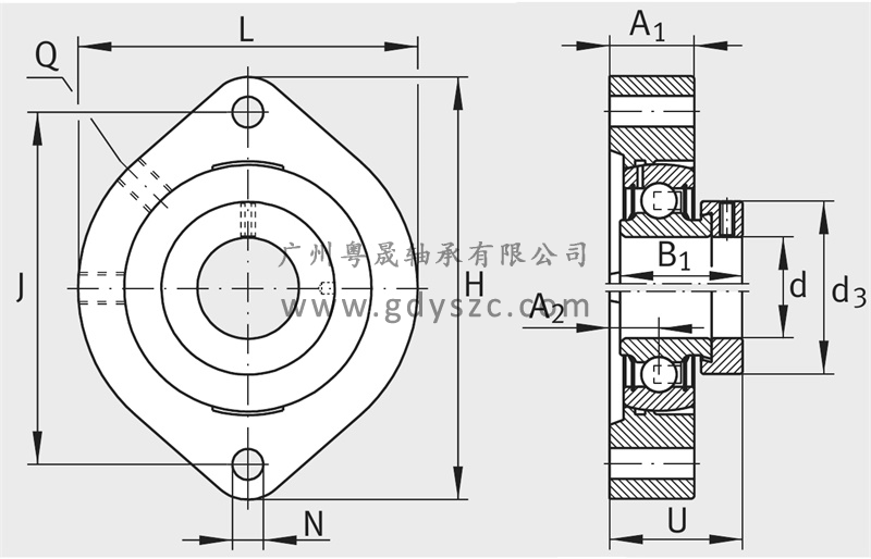 基本參數(shù) 型號 GLCTE12 系列 兩螺栓法蘭式軸承座單元