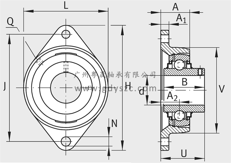 基本參數(shù) 型號 RCJTY30-N 系列 兩螺栓法蘭式軸承座單元