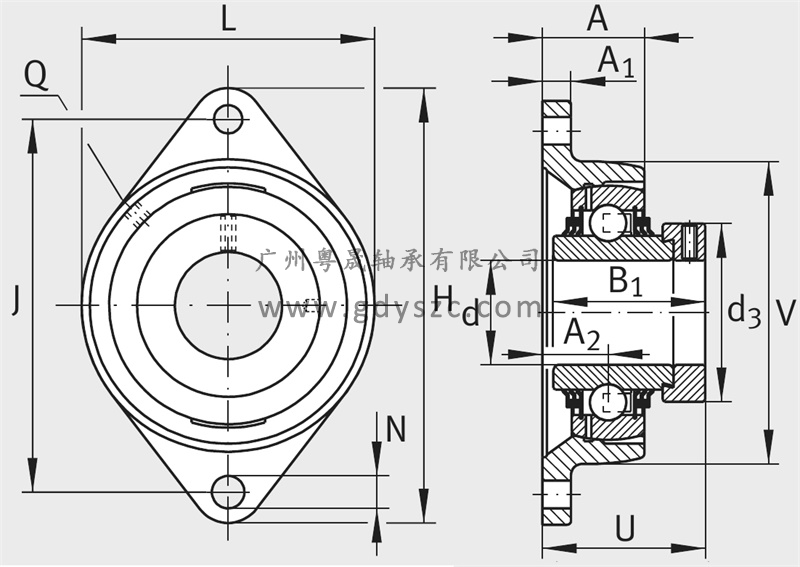 基本參數(shù) 型號 TCJT65-214 系列 兩螺栓法蘭式軸承座單元