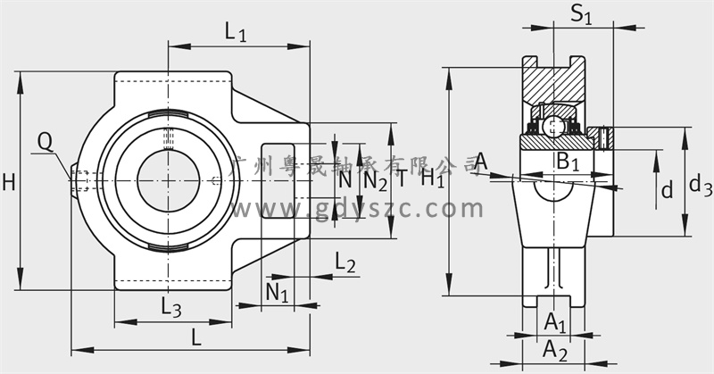 基本參數(shù) 型號 TTUE60 系列 懸掛式軸承座單元