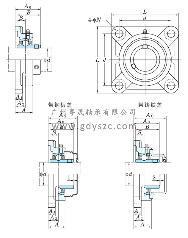 基本參數(shù) 型號(hào) UCF217 系列 帶方形座軸承