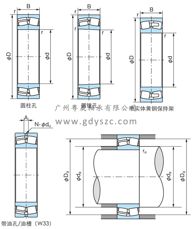 其他型號 帶潤滑孔型號 22320EXW20 帶潤滑孔和油槽型號 21304EW33
