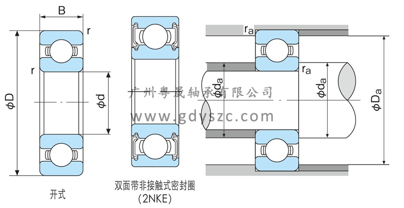 基本參數(shù) 型號 6905-2NKE 系列 深溝球軸承(雙面帶非接觸式密封圈)