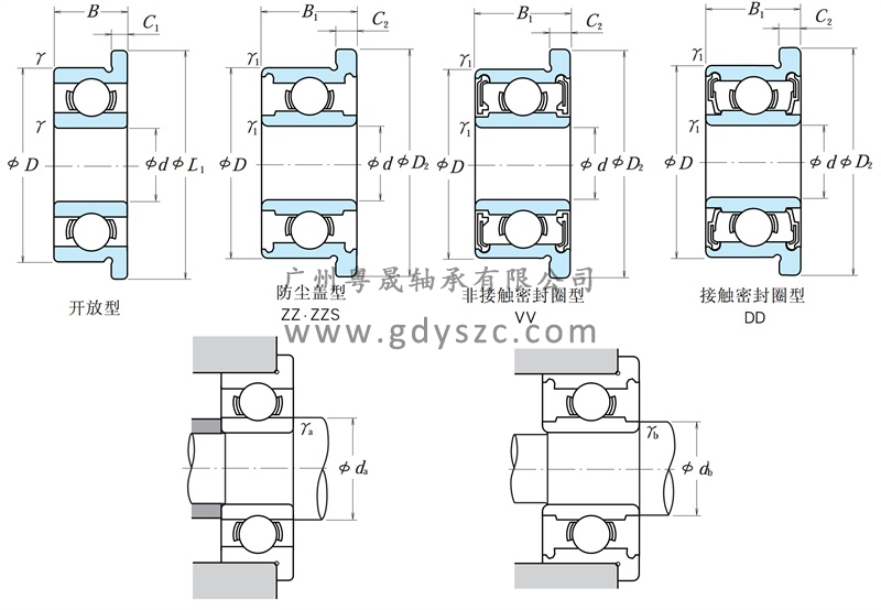 基本參數(shù) 型號(hào) F607Zl 系列 小型及微型球軸承(帶止動(dòng)擋邊)