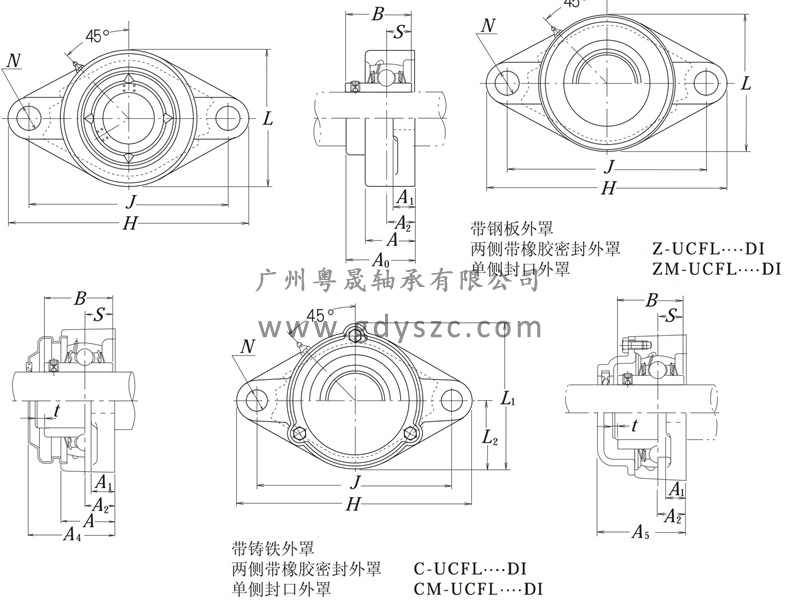 基本參數(shù) 型號 Z-UCFL207D1 系列 帶止動螺針座外球面向心球軸承
