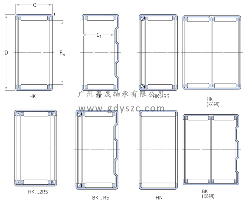 基本參數(shù) 型號 HK1518RS 系列 沖壓外圈滾針軸承