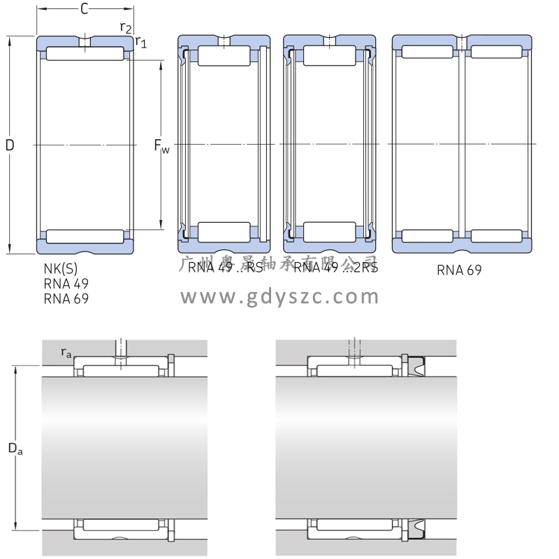 基本參數(shù) 型號(hào) RNA4908 系列 帶機(jī)削套圈、擋邊、不帶內(nèi)圈的滾針軸承